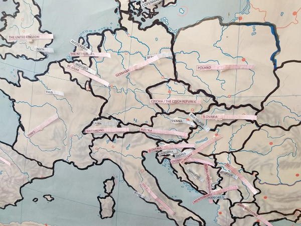 U trećem dijelu sata učenici su lijepili na karti papiriće s imenima država i gradova na engleskom jeziku.
