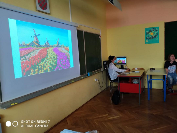 Drugi dio sata je vodila nastavnica Marija. Učenici su bili podijeljeni u tri grupe. Uz pomoć Power Point prezentacije učenici su trebali na engleskom jeziku pogoditi imena država i gradova gledajući u slike na slajdovima. Slike su predstavljale znamenitosti, zastave, krajolik i sl. tih zemalja. Učenici su pokazali zavidno znanje i bilo je potrebno puno slajdova do proglašenja pobjednika.
