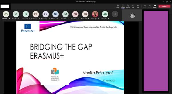 10. lipnja 2022. na Županijskom stručnom vijeću nastavnika Matematike srednjih škola Zadarske županije psihologinja naše škole Dragana Švenjak, održala je predavanje o Darovitosti, a Monika Peša, učiteljica Matematike je predstavila Erasmus+ projekt "Bridging the gap" pokazujući kako je inkluzija implementirana u rad naših učitelja.