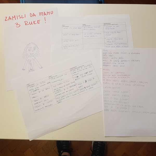 Učenici su se na radionici upoznali s metodom PMI ( plus, minus, interesting) na kojoj su razmatrali neobične zamisli nastojeći pronaći dobre i loše strane kao i zaključiti što interesantno može proizići iz iste zamisli ili koja se dodatna pitanja mogu postaviti.
