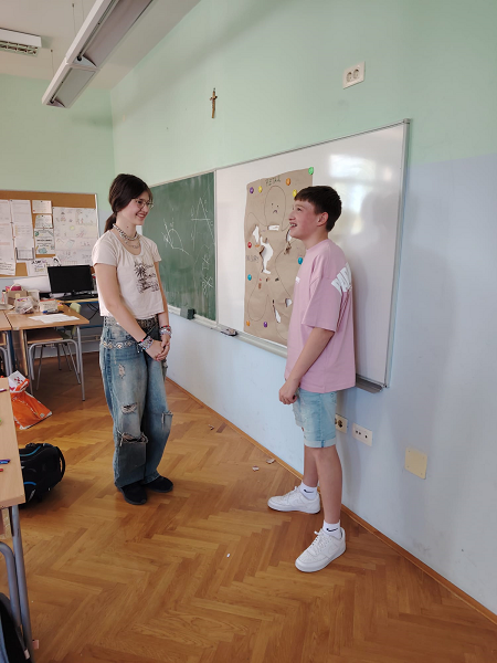 Učenici su smješteni u obiteljima, a prvi dan u školi im je prošao u zabavi i svladavanju novih vještina. Isprobali su modelarstvo s učiteljicom Nelom Joja, izradu keramike s učiteljicom Miljanom Ćavar Radić i sat TZK s učiteljem Antom Drobnakom te su s učiteljicama Jasminkom Adžić Sikirić i Martom Škunca imali radionicu na temu prevencije zlostavljanja među djecom (Peter Bully).