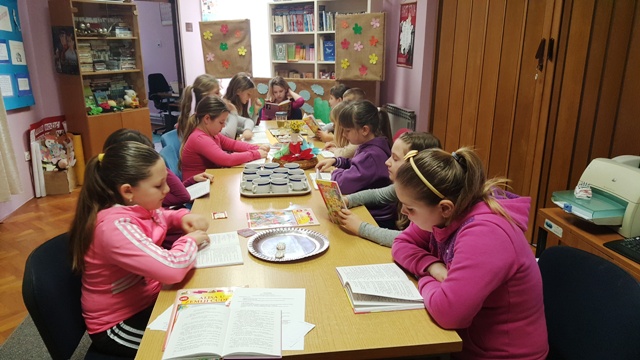 Uz fini čaj koji nam je skuhala naša kuharica Kata petaši su proveli ugodno vrijeme u susretu pod nazivom Tea time te spojili hrvatski i engleski kroz priče, romane i slikovnice. S učiteljicom Ninom Lonić i knjižničarkom Marijanom učenici su razgovarali o prevođenju, o poznatim djelima engleske književnosti i engleskim piscima nakon čega su učenici odabirali djela na engleskom jeziku i čitali odabrane ulomke.