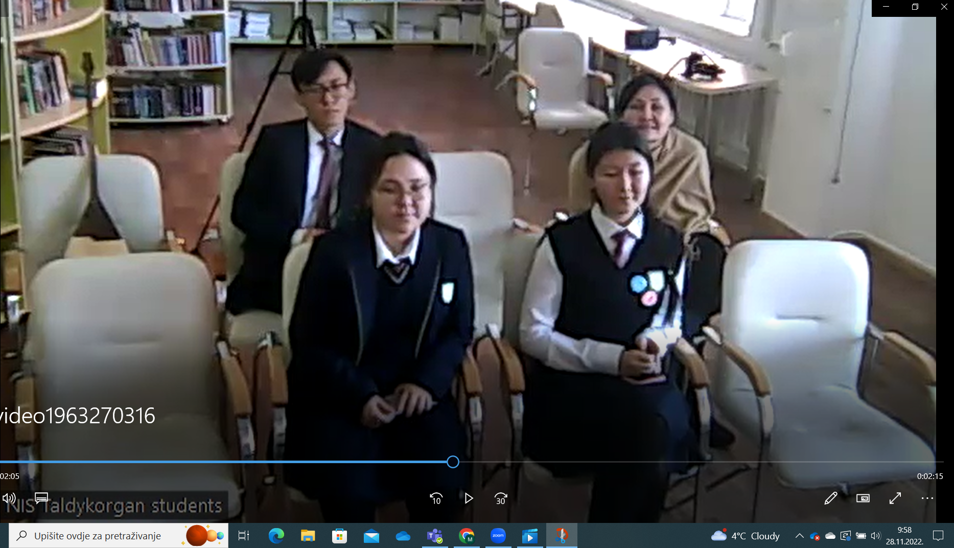 Učenici 7.a i 7.b razreda imali su online susret sa školama iz Pakistana i Portugala. Prvi susret imali su s učenicima iz pakistanskog grada Karachija i škole Happy Home School, a nakon toga s učenicima iz portugalskog grada Chavesa i škole Escola Secundaria Dr. Antonio Granjo. Učenici 8.a i 8.b razreda online su se susreli s učenicima iz kazahstanskog grada Taldykorgana i škole Nazarbayev Intellectual School. Učenici su pritom jedni drugima prezentirali svoje zemlje, znamenitosti, mjesto iz kojeg dolaze i svoje škole te razgovarali o temi Reading for global peace and harmony. Također su razgovarali nevezano o vršnjačkim temama te se na taj način bolje upoznali. Iako s različitih krajeva svijeta, različitih kultura, vjera i običaja, svi su se složili u jednome, a to je da nam je svima najvažniji mir, a da do mira, razumijevanja i poštovanja možemo doći samo što boljim upoznavanjem jedni drugih, znanjem, obrazovanjem i čitanjem. Učenike su za susret pripremale učiteljica Engleskog jezika Nina Lonić i knjižničarka Marijana Pavić.