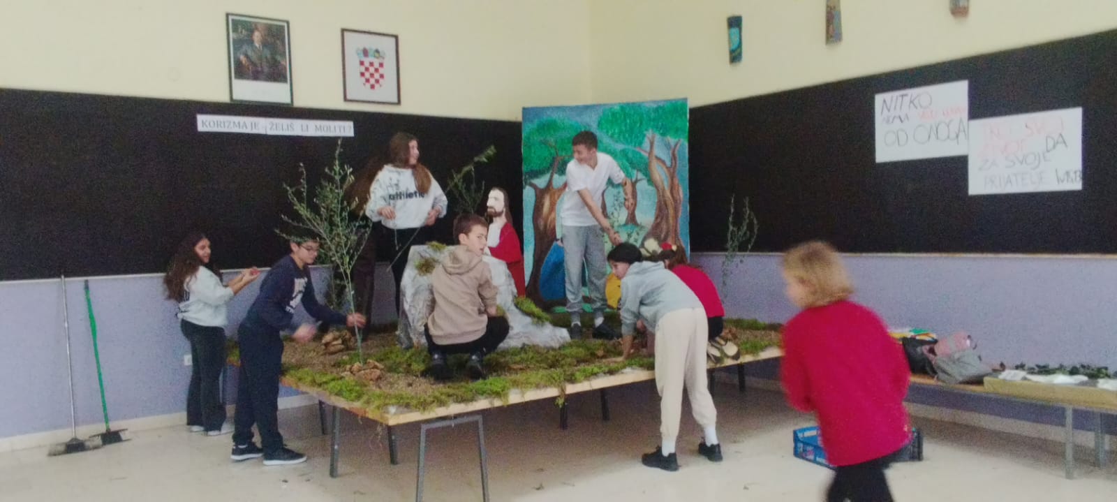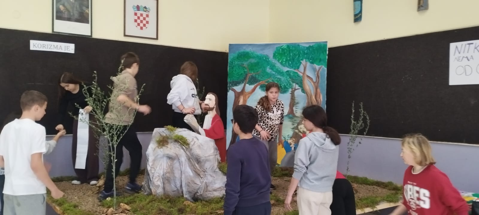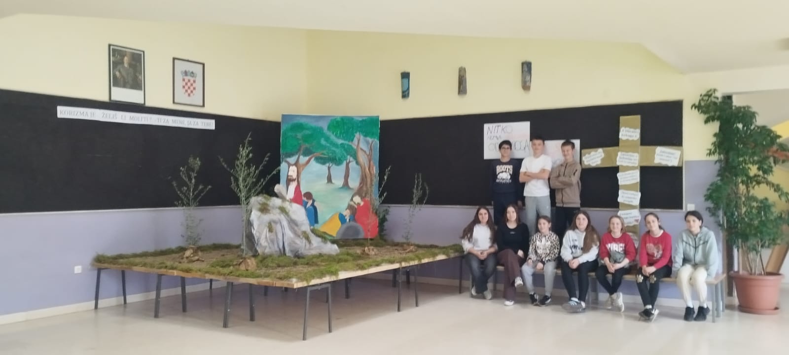 Učenici su zajedno s vjeroučiteljicom Marinom i učiteljicom likovne kulture Miljanom izradili Maslinski vrt u holu škole. Ovaj kreativni projekt nastavljamo i ove godine kao dio priprema i promišljanja za uskrsno vrijeme.