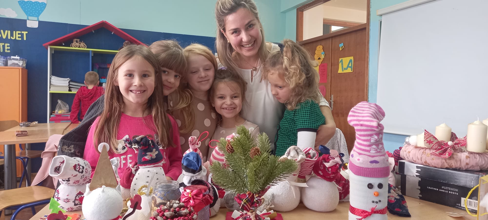 "Ovo nam je najbolji dan u školi!" Tako su učenici 1.a opisali svoj radni dan u četvrtak 16.11. nakon održane radionice izrade božićnih ukrasa za božićni sajam. Radionici su se pridružile i dvije mame koje su nam pomogle oko izrade snjegovića i pokazale svoje umijeće izrade božićnih ukrasa. Po završetku svatko je imao svog snjegovića a o dojmovima najbolje govore osmijesi djece.