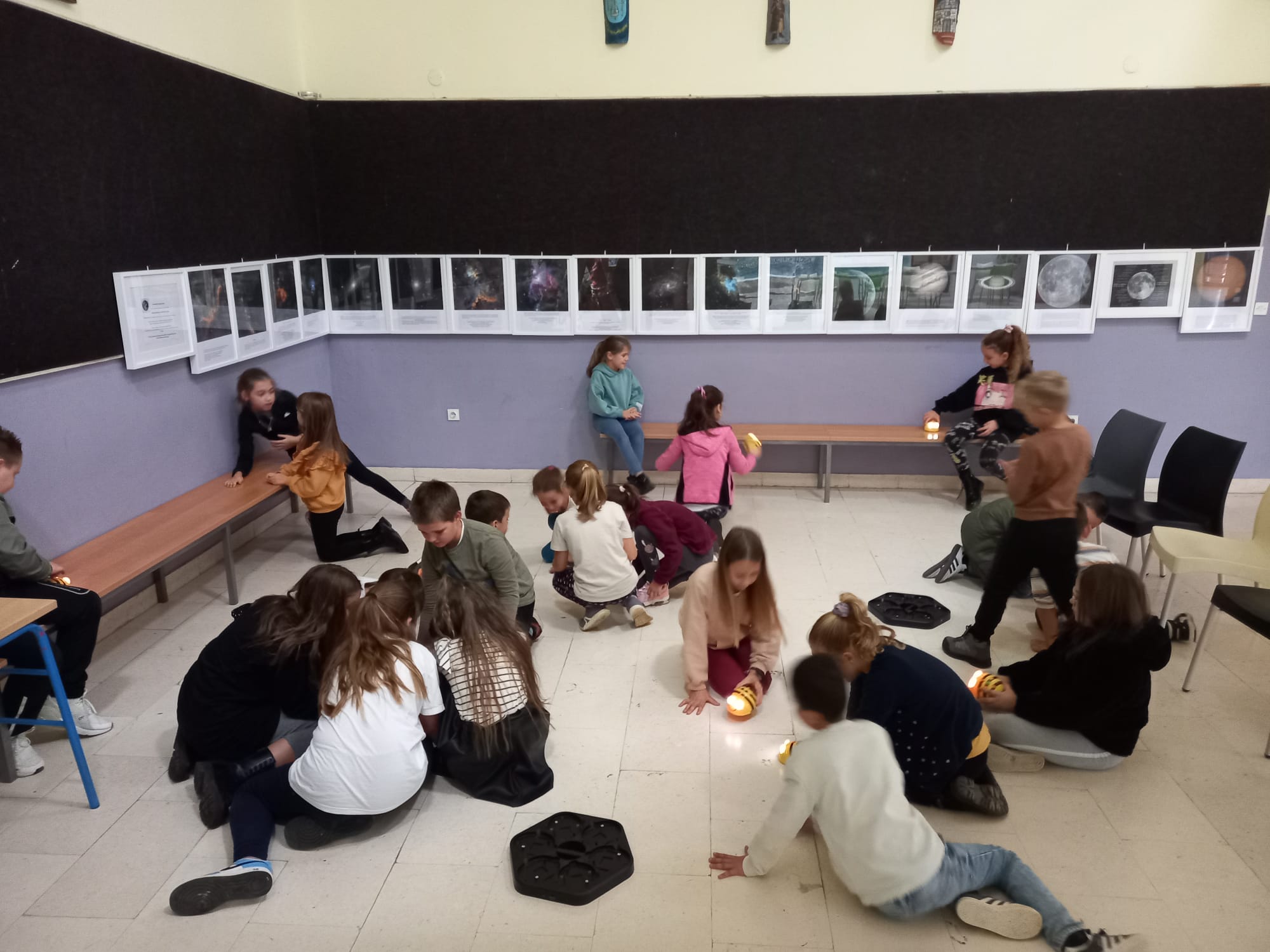 Kroz učenje j igru, podjeljeni u dvije grupe kombinirane od oba razreda učenici su bili izuzetno aktivni te su ove zanimljive sate zaključili crtanjem i promatranjem izložbe fotografija Svemira postavljene od članova Zajednice tehničke kulture Zadar.