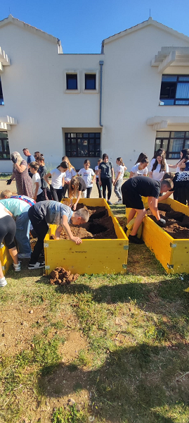 Danas su naši osmaši, uz pomoć domara Dinka Sikirića i Marina Sikirića, u dvorište škole postavili visoke gredice koje su sami izradili. Nakon toga su ih napunili zemljom (donacija LOVRE BUGARIJA) i humusom OPG Ivica Kinda. Potom su učenici 3.a i 3.b razreda u visoke gredice posadili sadnice uzgojene u sklopu Izvannastavne aktivnosti Uzgoj biljaka - tehnologija i priroda financirana od strane Ministarstva znanosti, obrazovanja i mladih. U gredice su posadili biljke uzgojene u Growbox ormaru i biljke uzgojene prirodnim načinom (u otvorenim kontejnerima). Učenici će sami održavati biljke (zalijevati, plijeviti, podupirati stapku itd.) i pratiti napredak jedne i druge vrste uzgoja. S nestrpljenjem iščekujemo prve plodove.