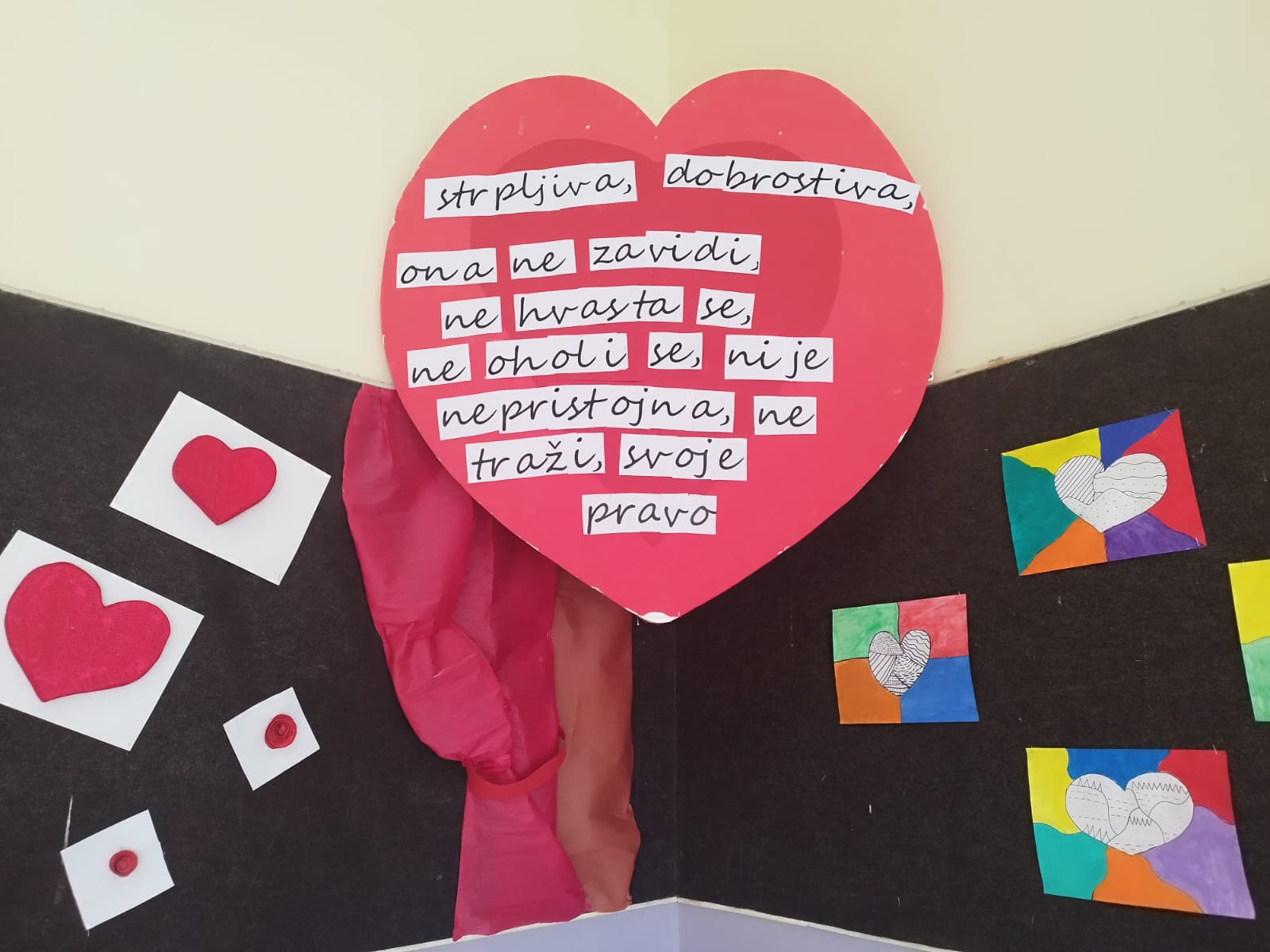 U našoj školi obilježili smo Valentinovo uz puno veselja i kreativnosti. Učenici su izrađivali i uređivali prigodne plakate s porukama prijateljstva, ljubavi i međusobnog poštovanja. Hodnici škole ukrašeni su šarenim srcima i lijepim mislima koje su razveselile sve učenike i učitelje. Kroz ovu aktivnost podsjetili smo se koliko su pažnja, ljubaznost i lijepa riječ važni u svakodnevnom životu.