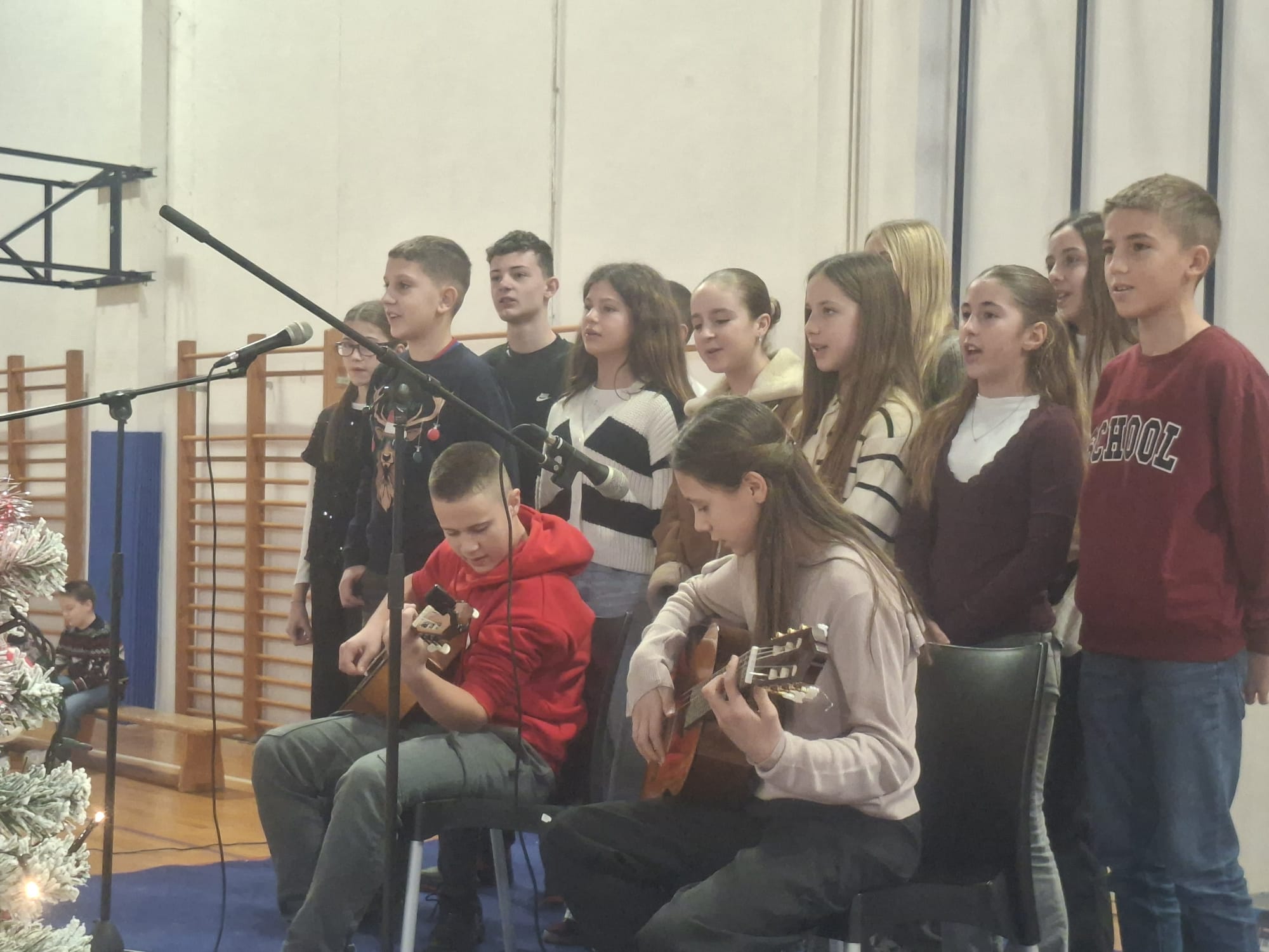 U našoj školi 23. prosinca 2025. održala se božićna priredba u kojoj su sudjelovali najviše učenici viših razreda, ali su priredbu otvorili oni najmlađi – mali školski zbor.