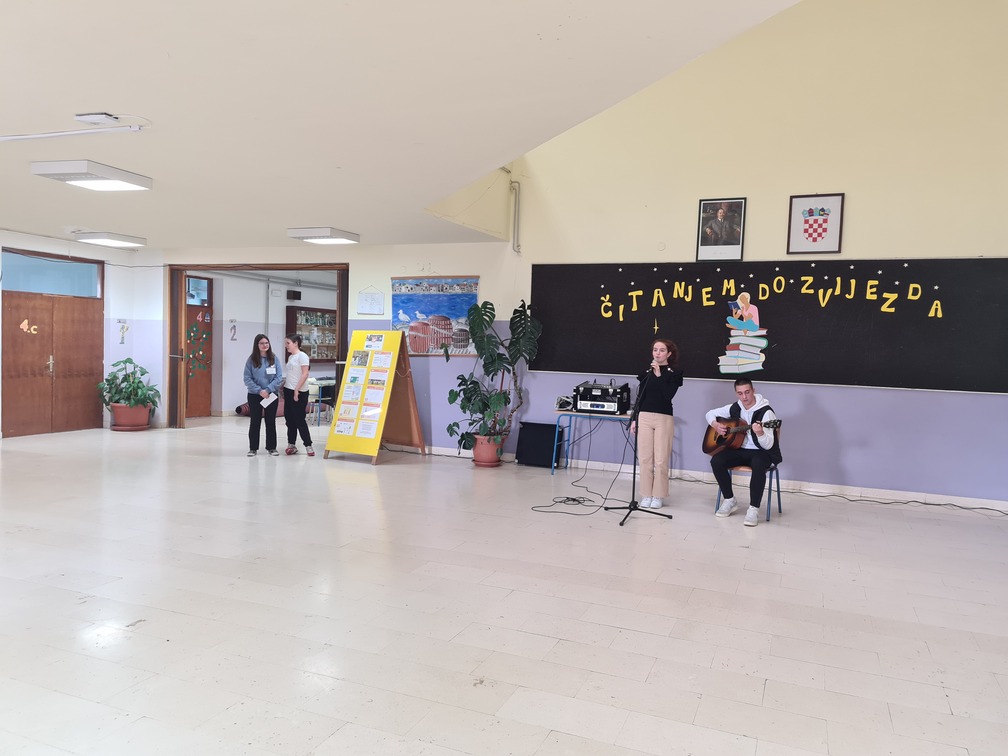 Natjecanje je otvoreno nastupom Tončice Sović, učenice 8.b razreda koja je uz gitarsku pratnju Roka Sikirića iz 8.a razreda otpjevala pjesmu Denisa Kovača Knjige i recitacijom Marka Sikirića učenika 5.a razreda s pjesmom Kad se čita autorice Ljerke Varga. Treba pohvaliti i učenice 6.c razreda Petru Ćuković i Anastaziju Vuica koje su bile izvrsne domaćice susreta te su pomogle gostima da se u našoj školi snađu i ugodno osjećaju.