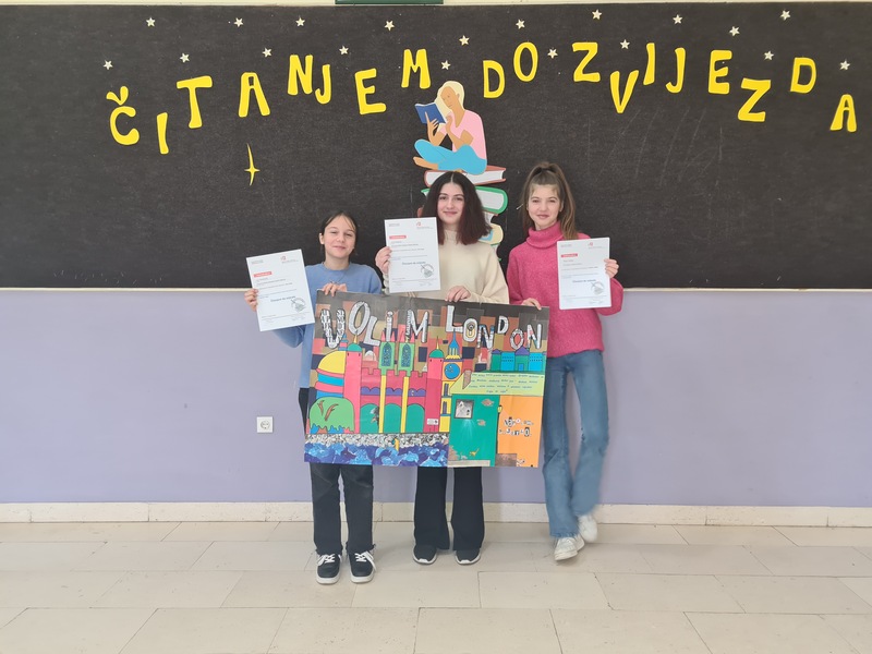 Naša škola plasirala se na državno natjecanje u objema kategorijama pod mentorstvom knjižničarke Marijane Pavić i učiteljice Likovne kulture Miljane Ćavar-Radić. U kvizu znanja učenice šestih razreda Flora Lisica, Luce Gambiraža i Lorena Bugarija osvojile su drugo mjesto iza prvoplasirane ekipe iz OŠ Biograd, a u kategoriji kreativni uradak naša učenica Flora Lisica sa svojim plakatom na temu Volim London dijeli prvo mjesto sa Jeanine Matija Coldeboeuf, učenicom iz OŠ Jurja Barakovića Ražanac.
