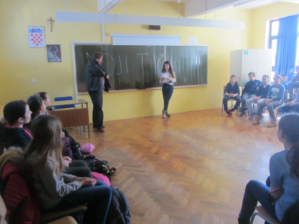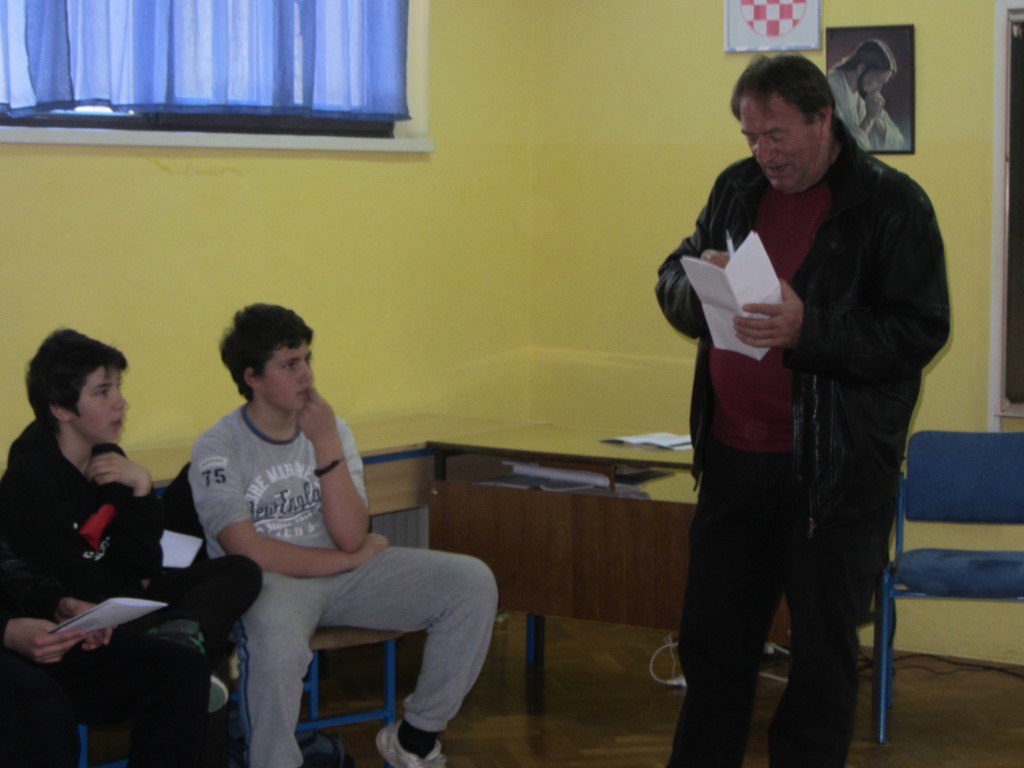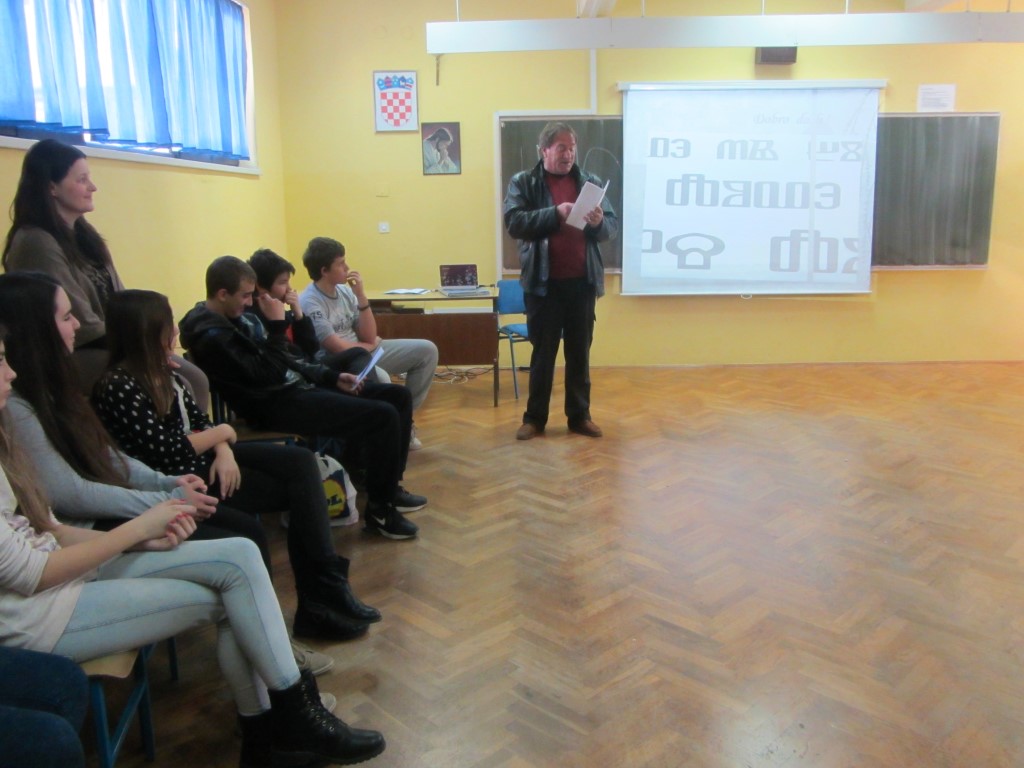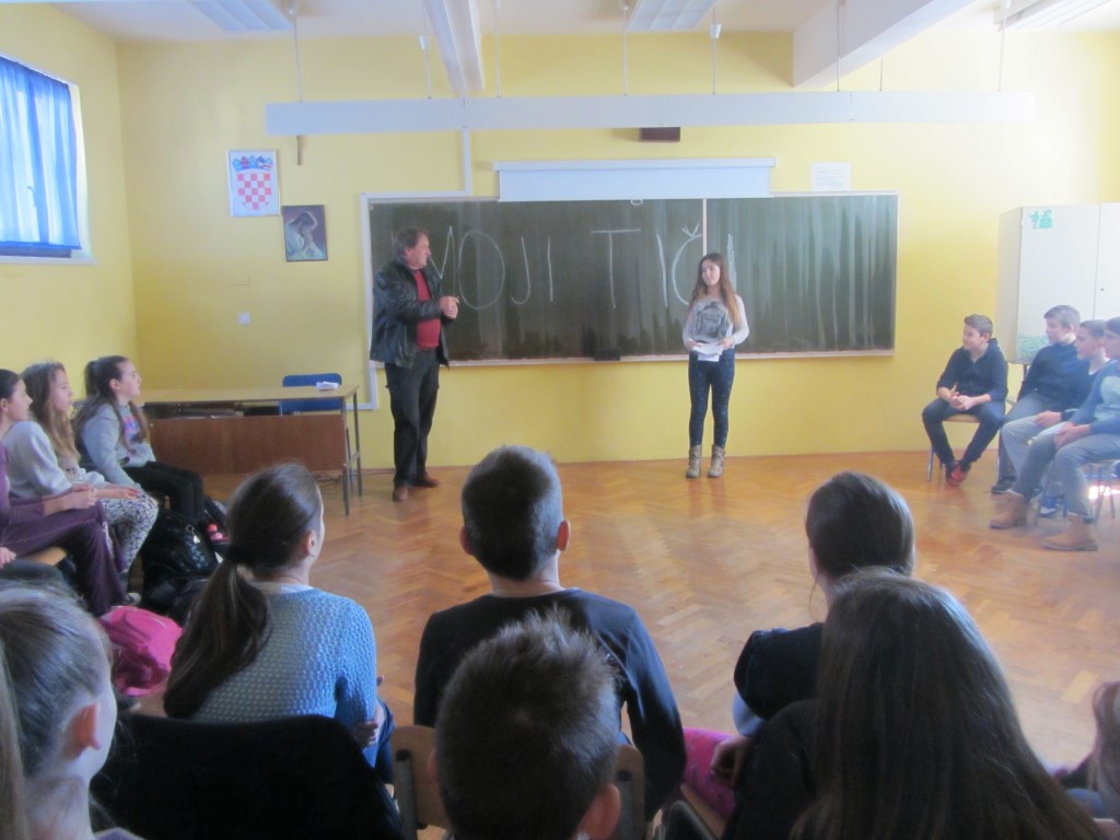 Povodom obilježavanja Međunarodnog dana materinskog jezika učenike viših razreda posjetio je bibinjski pjesnik Ante Sikirić koji je održao male radionice pisanja za petaše, osmaše (8. b) i dio šestaša.