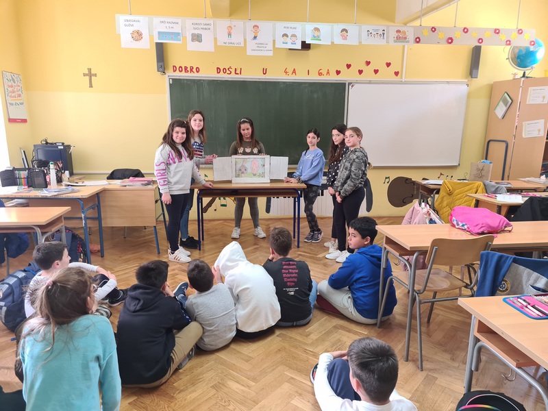 Inspirirani kartama Pričosvijet-putovanja i pustolovine učenici 1.b, 2a, 2.b, 2.c i 4.c razreda sa svojim učiteljicama Natalijom Kero, Marijom Sorić, Dijanom Spahija, Dijanom Budiša i Jasnom Kevrić su na različite načine interpretirali bajke, likove iz bajki , strukturu bajki i njihovu pouke, ali su i samostalno stvarali vlastite bajke pri čemu su iskazali visok stupanj kreativnosti. Grupa učenica iz 4.a razreda upoznala se s japanskom tehnikom pripovijedanja uz pomoć kutije Kamishibai te su za svoj razred pripremile izvedbu pripovijedanja bajke Kako je Potjeh tražio istinu, a učenici iz produženog boravka zabavili su se igrajući društvenu edukativnu igru Čiri-biri-bajka. I naš učenik Filip Šindija iz 4.b razreda koji ima nastavu kod kuće također se sa svojom učiteljicom Ivanom Puljiz priključio programu i stvorio svoju bajku inspiriranu kartama Pričosvijet.