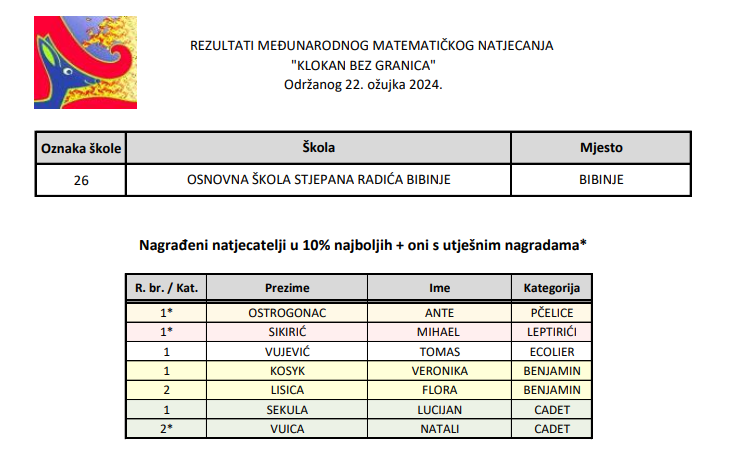 Nagrađeni učenici naše škole na natjecanju " Klokan bez granica"