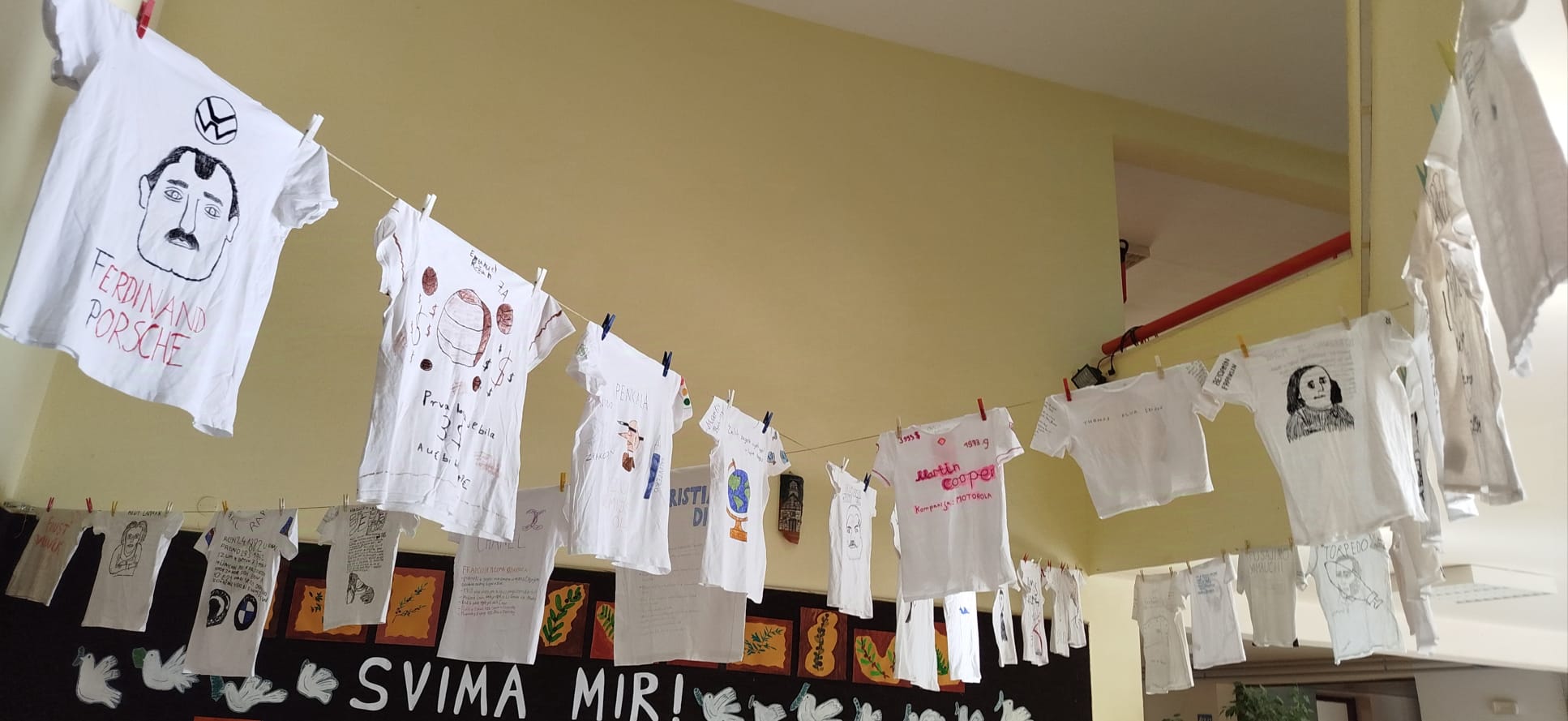 U sklopu projekta Međunarodni dan izumitelja, učenici šestih, sedmih i osmih razreda s nastavnicom hrvatskog jezika Ivanom Kero i nastavnicom fizike Antoniom Budanko Brkić, oslikali su majice s njima zanimljivim izumiteljima. Majice smo objesili u školski hol da se sjetimo da su nam bitni a i da se sami propitamo možemo li mi biti idući izumitelji.