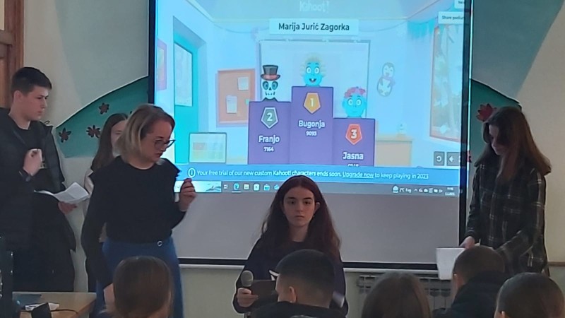 Učenici 6.a i 6.b razreda sa svojom učiteljicom Hrvatskog jezika Jasminkom Adžić Sikirić izrađivali su društvene igre, kvizove i video-mamce za Zagorkina djela dok su učenici 8.a i 8.b razreda pod mentorstvom učiteljice Marijane Kandić pisali osvrte i problemske članke na temu uređivanja i odnosa žena i muškaraca u Zagorkino doba i danas te današnjim trendovima ljepote koji idu u ekstreme. Potaknuti Zagorkinim člankom Zašto se kiti žena, a ne muškarac (malo šale, malo istine) objavljenim u časopisu Ženski list iz 1934. godine učenici Tončica Sović i Sara Šindija iz 8.b razreda te Danijela Rimanić, Marija Sović, Bruno Badrak i Ivano Konestabo iz 7.b razreda pod mentorstvom knjižničarke Marijane Pavić i učiteljice Jasminke Adžić Sikirić snimili su film Zašto se kiti žena.