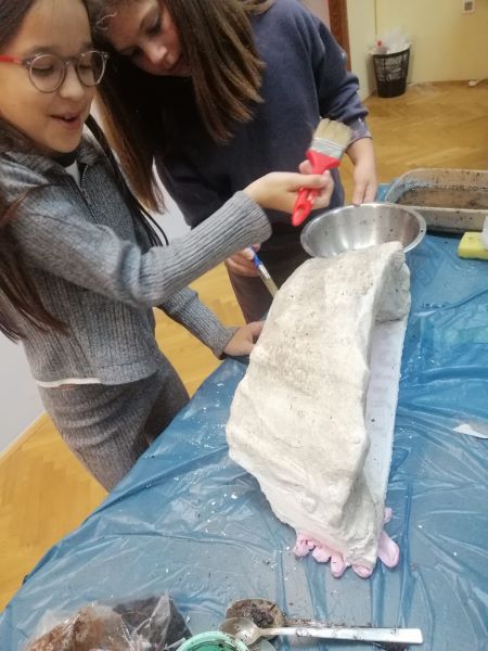 Naši bivši učenici, sada srednjoškolci: Ivano Konestabo, braća Antonijo i Petar Bugarija pomogli su učenicima 5.a razreda u izradi jaslica nesebično i strpljivo dijeleći svoje znanje i iskustvo. Radionici se pridružila kolegica iz Područne škole Ploča Olivija Babec koja je istu radionicu provela sa svojim učenicima 2. razreda. Ovo je odličan primjer prenošenja, tj. darivanja znanja i umijeća izrade od velikih malima te lijep primjer suradnje kolegica dviju škola u dijeljenju novih znanja i vještina u izradi božićnih jaslica što je dio naše kršćanske tradicije. Vjerujemo da će se i tradicija izrade jaslica u našoj školi nastaviti prenositi s generacije na generaciju. Djelić atmosfere s radionice naših vrijednih učenika možete pogledati u galeriji.