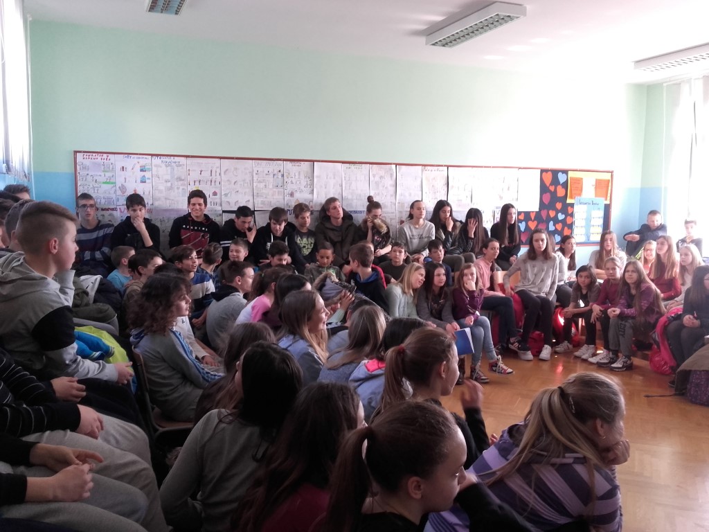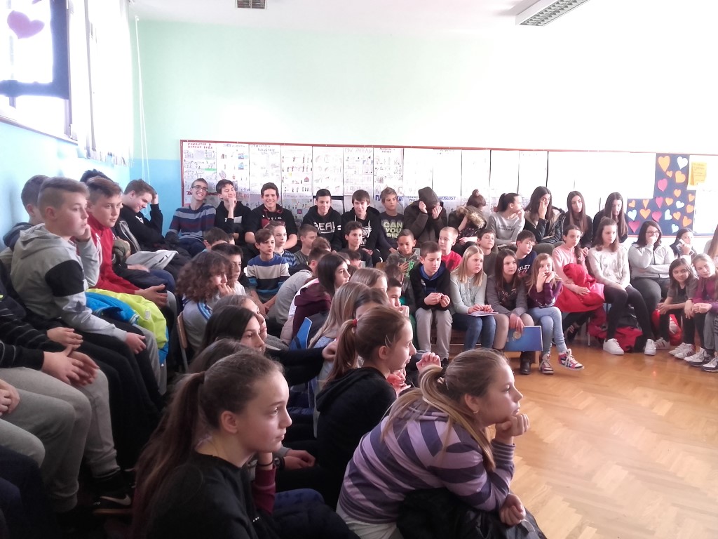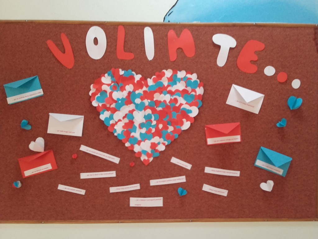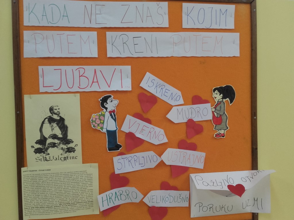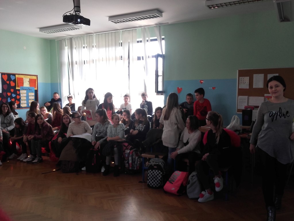 Ljubav se zavukla u svaki kutak naše škole i rasplamsala na Valentinovo koje smo obilježili već tradicionalnim sijelom šestog školskog sata što su ga pripremile profesorice hrvatskog jezia i knjižničarka. Bilo je tu svega pomalo- literalnih radova koje su pripremili učenici petih razreda, video uradak Volim te novinarske skupine, slagalica, recitacija na engleskom jeziku i upoznavanja s porijeklom ovog danas vrlo popularnog blagdana pa sve do plesa oko stolica kojeg su izveli petaši i valcera s loptom. Bilo je veselo, burno i vrlo vruće- valjda od ugrijanih srdaca!